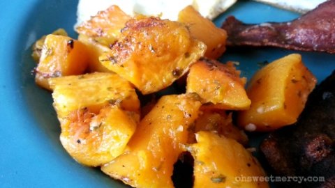 This simple, savory roasted butternut squash is easy to make and packed with nourishing nutrients. Suitable for both THM E and THM S style meals, just follow recommendations in the notes.