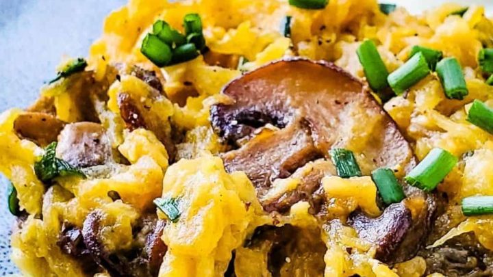 Buttery Garlic, Mushroom and Chive Spaghetti Squash