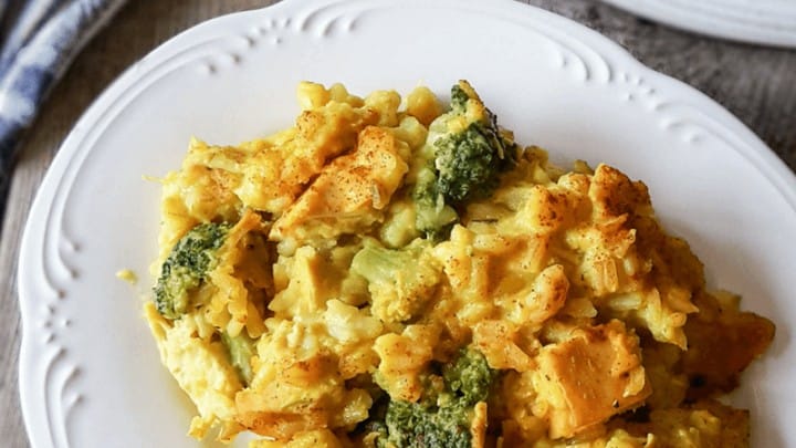 Dairy Free Cheesy Chicken, Broccoli, and Rice Bake - Nourishing Carbs! THM E