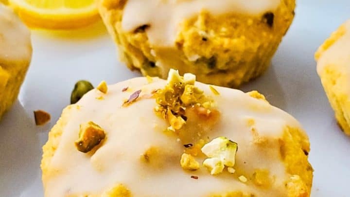 Glazed Lemon Pistachio Muffins | THM S, Low Carb