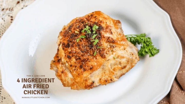 This low carb 4 Ingredient Air Fried Chicken has a definite Southern fried chicken vibe but it’s lighter and healthier and still FULL Flavored! THM- Deep S Oven-fried chicken has long been one of my very favorite ways to serve up crispy, flavorful chicken without standing over a hot skillet.