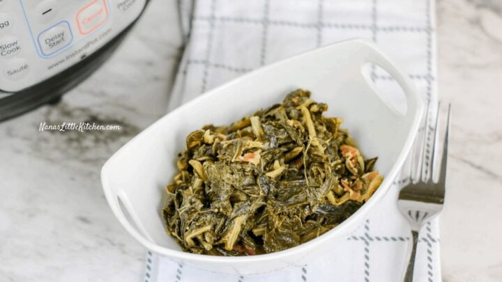 Nana's Instant Pot Southern Greens are an easy, spiced-up version of a timeless classic. They're also THM S and keto friendly!