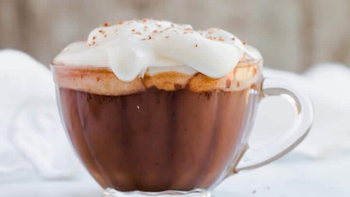 The creamiest keto hot chocolate you will ever have, plus its dairy free! Topped with a foamy meringue topping, this low carb hot cocoa is guaranteed to warm you up after a day of playing in the snow and will satisfy your chocolate craving.
