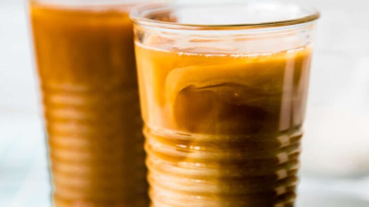 An easy healthy way to use MCT oil is to make Iced Bulletproof Coffee Latte! No butter needed. Vegan and paleo friendly.